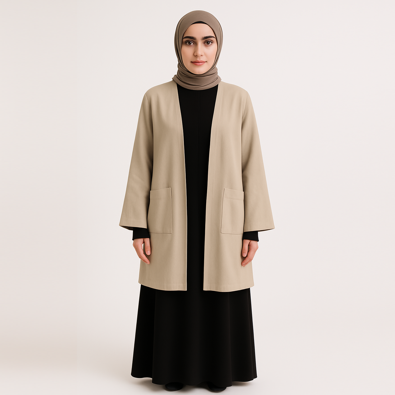 Neutral tones and a flowing design make this cardigan easy to match with your existing hijab wardrobe—from casual everyday looks to mosque-ready fits.