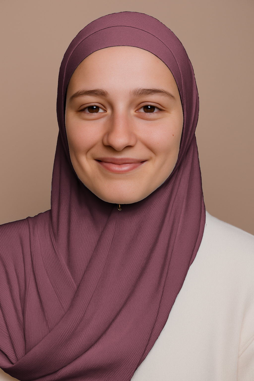 Our hijab is made from a premium bamboo cotton blend with a ribbed texture that keeps it breathable, soft, and secure all day. It feels cool in humid weather and warm in winter, so it’s perfect year-round.